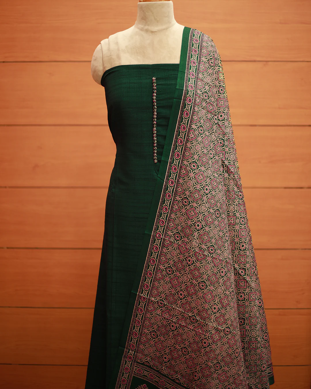 Ajrakh Semi Jute Unstiched Salwar Suit -1257