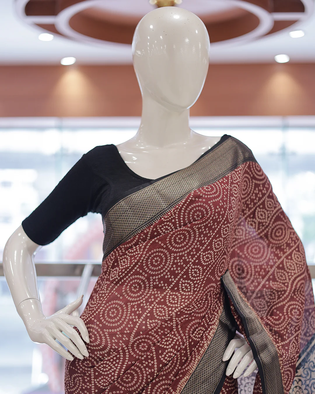 Elevate your ethnic style with this elegant black saree featuring intricate white printed patterns and rich red brocade borders. Perfect for festive occasions, office wear, or casual gatherings, this lightweight saree offers a graceful drape and a timeless appeal. The contrasting red pallu with traditional motifs adds a touch of heritage charm, making it a must-have in every wardrobe.