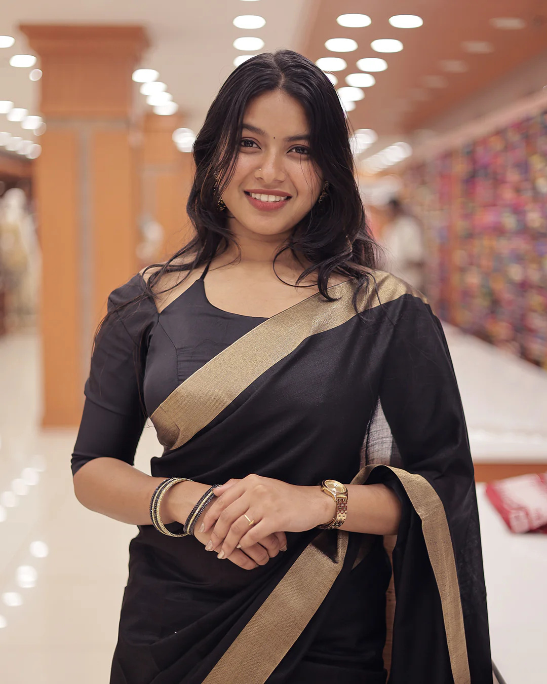 Discover timeless elegance with this black semi linen saree featuring a rich golden zari border. Crafted from breathable semi linen fabric, this saree blends the comfort of cotton with the subtle sheen of silk. Lightweight and easy to drape, itās ideal for festive occasions, office wear, and evening parties. Pair it with statement jewelry for a sophisticated traditional look.