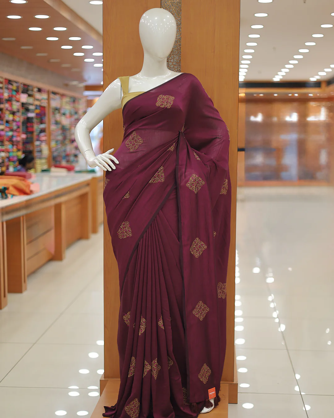 Make a timeless style statement with this elegant maroon saree featuring intricate golden thread embroidery across the drape. Crafted from soft, flowy fabric, itās perfect for festive occasions, weddings, and party wear. The subtle detailing and rich tone add grace and sophistication, making it a must-have for your ethnic wardrobe. Explore premium designer sarees online at Alinz by Swapna Weddings.Ā Sarees for Women from Swapna Weddings at Rs.699Ā . Product Code:G292Ā