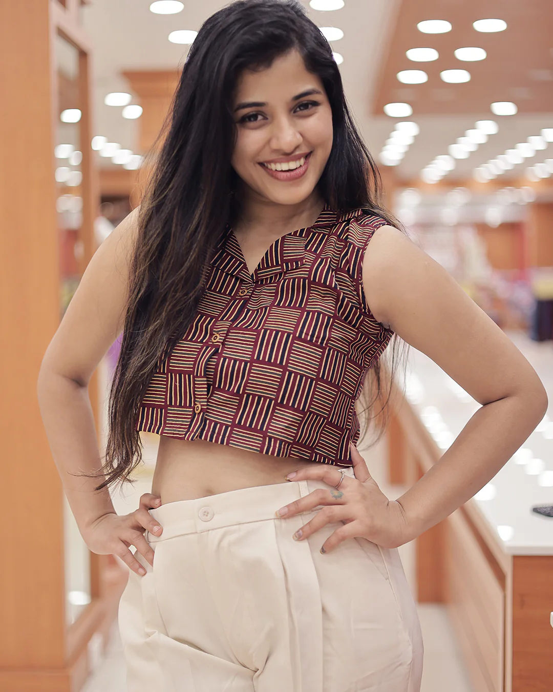 This women's cotton crop top combines comfort and style with its breathable fabric and front openable design. Featuring a shirt collar and sleeveless cut with sleeves attached inside, it offers versatile wear options. Priced at ā¹349, it is an affordable choice for those seeking a modern, functional wardrobe staple.Ā .