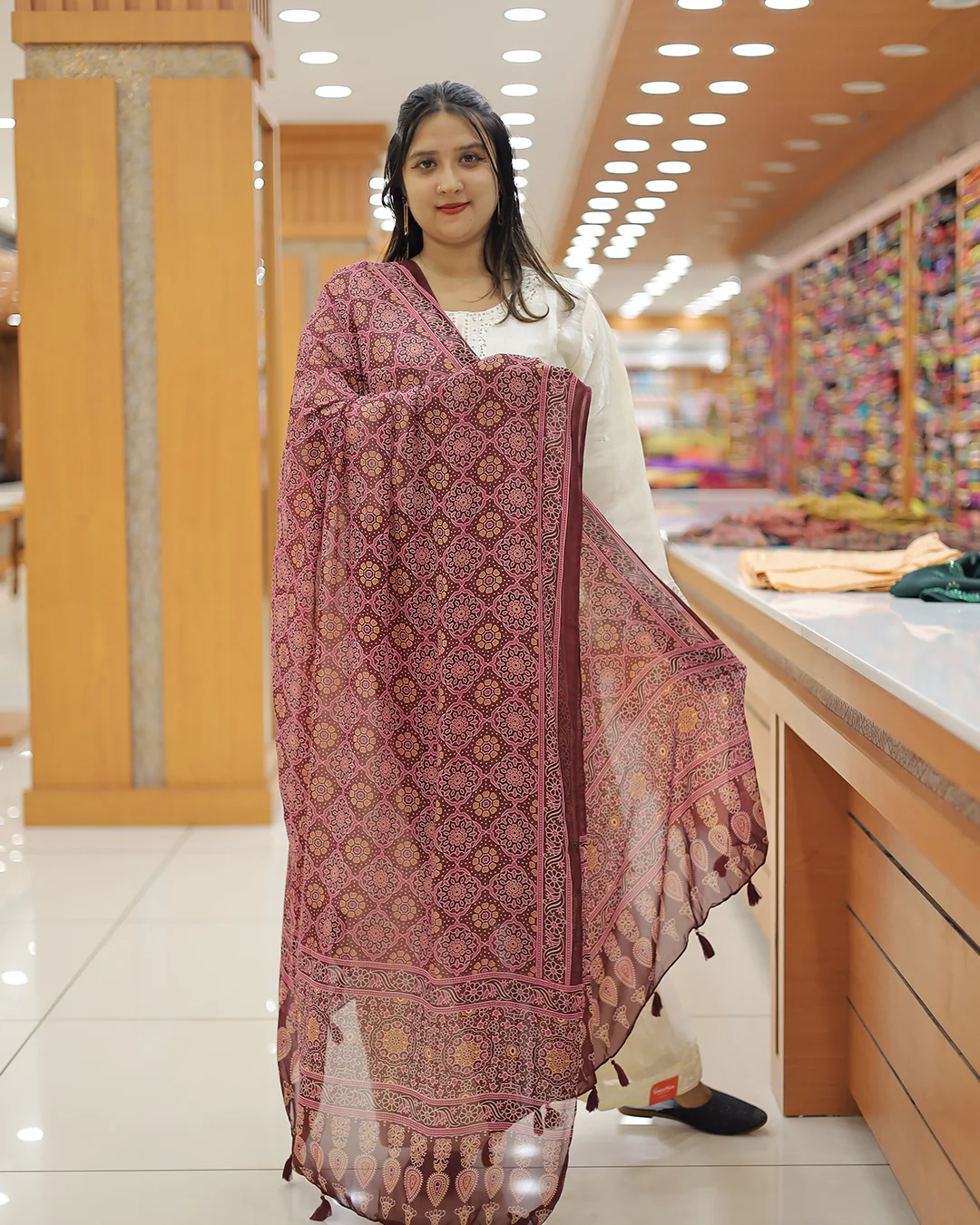 Discover the timeless beauty of our Women's Ajrak print Dupatta in Georgette material. crafted with intricate Ajrak patterns, this elegant piece adds a touch of cultural heritage to any outfit. Experience comfort and style at just rs 333. Order now and elevate your ethnic wardrobe.Product Code:G271